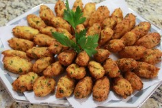 Kleine frittierte Bällchen aus Kartoffeln und Stockfisch.
